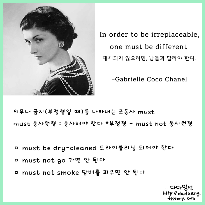 오늘 명언에 등장한 must 는 '-해야 한다'는 뜻을 가진 조동사로, 의무를 나타냅니다.