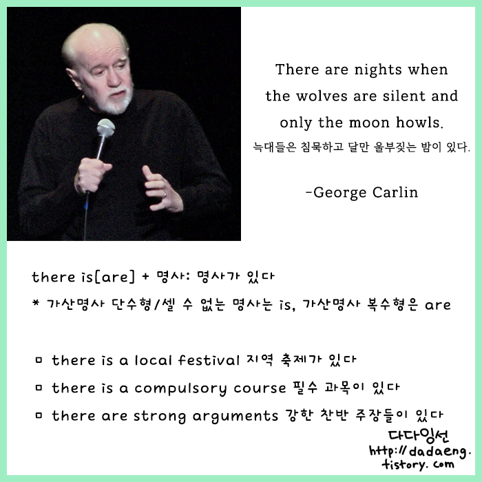 there is[are] 뒤에 명사를 붙여주면 '명사가 있다'라는 표현을 만들 수 있습니다.